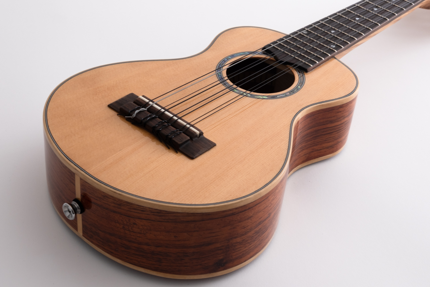 This concert-scale 8-string delivers the bright, chiming, “chorus-like” sound typical of multi-string ukuleles, but in a more compact and comfortable size than a tenor.